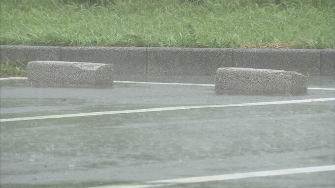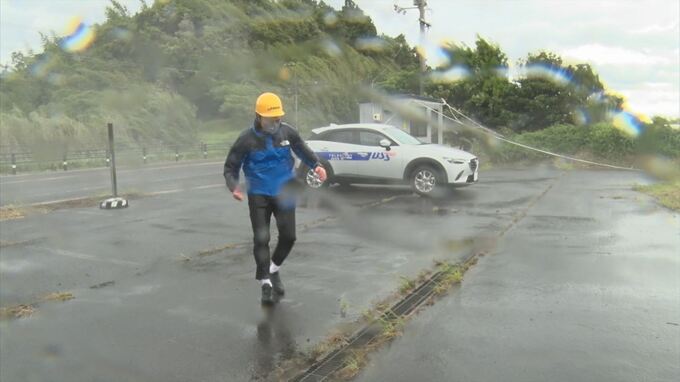 「正午の出雲市多伎町です。急に遠くが見えないような雨が降ってきて、風も強く、目を開けていられない状況です」