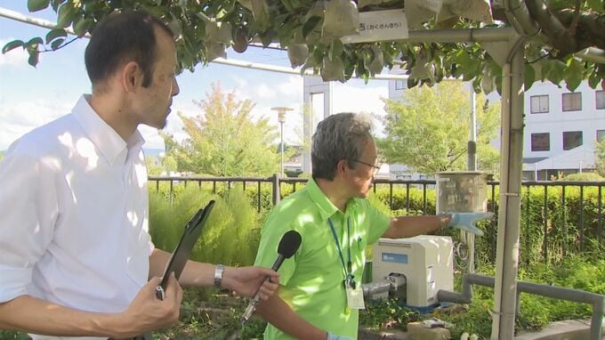 「ここにお客様に見ていただくために大きなナシを展示してたんですけども、軽いかじり跡があったのが1回あって、その後、結構派手にかじられるようになりまして」