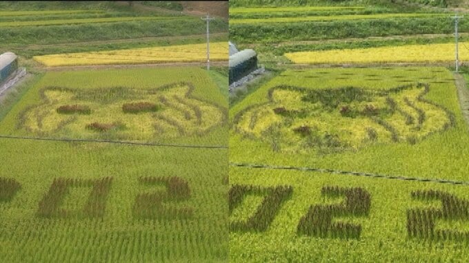 「トラ」を描いていたはずの田んぼアートが、かわいらしい「ネコ」に変身してしまったというのです。