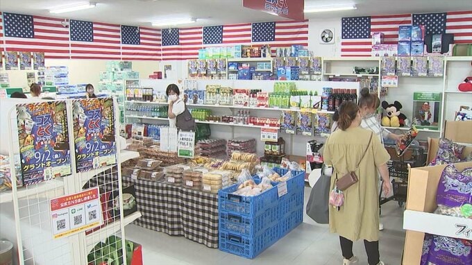 「店内にはアメリカ国旗がたくさん飾られています。そして、陳列されている商品もアメリカンサイズです」