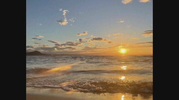 「おすすめです。いまこっちの方で夕陽が見えるんですけど」