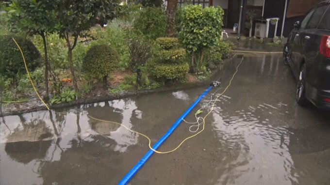 経験のないほどの激しい雨。玄関では床の割れ目から水があふれ出していて、ポンプを使っての排水作業に追われていました。
