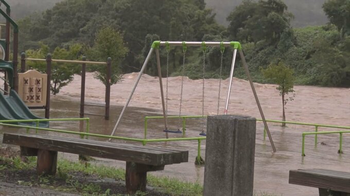 「あちら公園、遊具のところまで浸かっています。公園と川の境目が分からなくなっています」