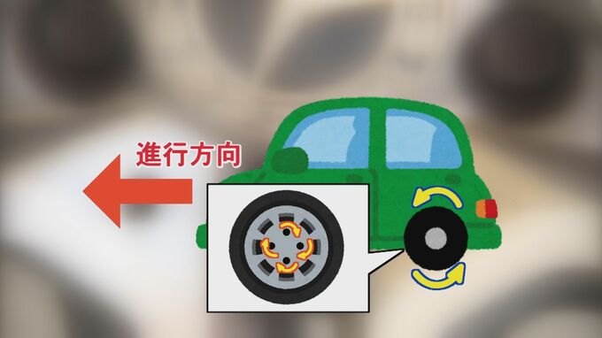 すると、車の左側では、この向きがタイヤが回る方向と逆方向となるため、車が走っているうちに緩みやすくなるとも言われています。