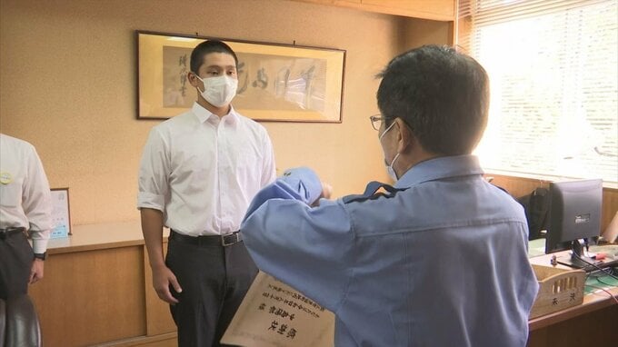 松江警察署の鍜冶幸正署長から感謝状を受け取ったのは、松江北高校の2年生、中島陽都さん16歳です。