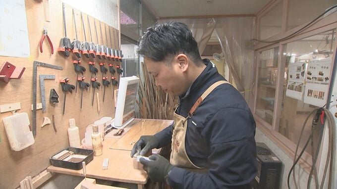 「結構手仕事で同じ形を作るのが結構難しくて、あとは寄木になると木によって硬さが違うので同じ力で削っちゃうと削れすぎたり削れてなかったりが出てくるので結構難しいですね」