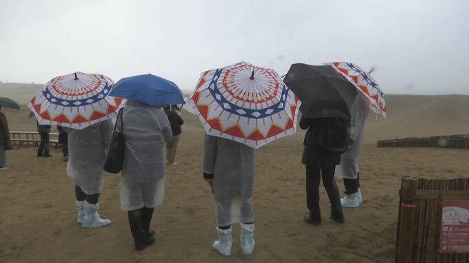 11日午後、鳥取砂丘を視察に訪れたのは、東京の映画制作などを行う会社のプロデューサーたち。