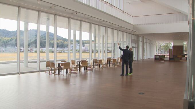 「こちらは開放的な吹き抜け空間となっています。南側の面は全面ガラス張りで、美術館では珍しい開放的な作りになっています」