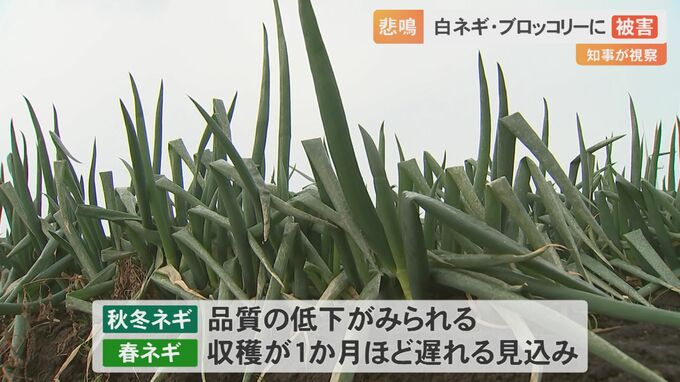 今まさに収穫の時期を迎えている秋冬ネギでは品質の低下がみられ、3月ごろから収穫が始まる春ネギは1か月ほど収穫が遅れる見込みだといいます。