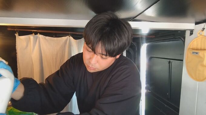 いまはキッチンカーで修行を積んでいて、最上位品質の豆を使いハンドドリップで丁寧に抽出したオリジナルブレンドコーヒーや、天然竹炭の入った黒い生地が特徴のクレープなどを提供しています。