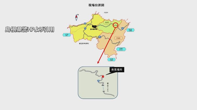 島根県警は、ホームページ上で遺体に関する情報を公開していて、遺体の特徴と一致する男性に心当たりがある人や、4月下旬から5月2日に現場付近を車やバイクで通行しドライブレコーダーの映像がある人など、広く情報提供を呼び掛けています。