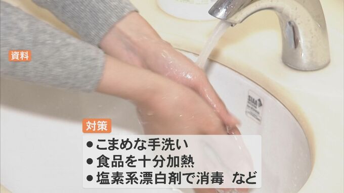 こまめな手洗い、食品を十分に加熱する、アルコールではなく塩素系の漂白剤で消毒をするなどの対策が有効だということです。