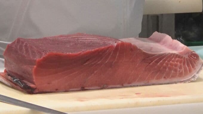 日本近海で水揚げされるクロマグロの多くは冬が旬ですが冷凍していないマグロが楽しめることから銀座三越では毎年、この時期に、境港産を店頭に並べているということです。
