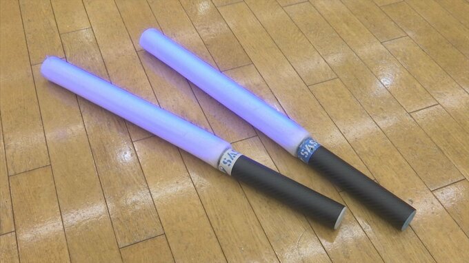 SASSENに必要な道具は2つ。勝負の判定に使う専用のアプリと、SASSEN刀と呼ばれる発泡ポリエチレン製の刀です。