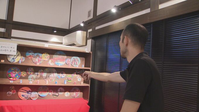 ここは子どもたちの大好きなおもちゃ屋さん。模型やけん玉、アニメのキャラクターのめんこなどなどがずらり。
