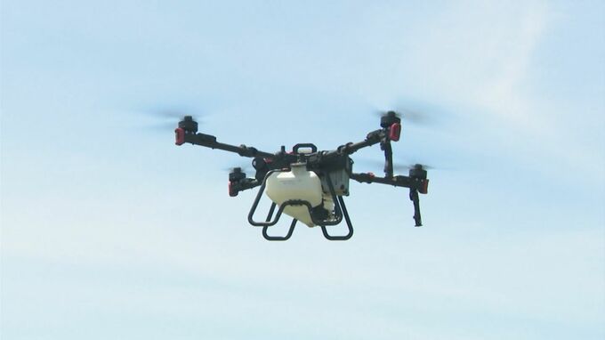 出雲市の農業法人「出雲あぐり村」では、イネカメムシ発生の注意喚起を受け、今年導入した大型ドローンを使って農薬散布をはじめました。