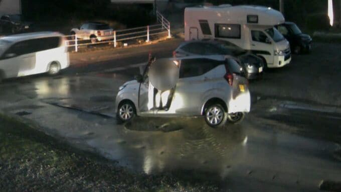 道路に空いた穴は直径およそ2メートル、深さおよそ60センチで上下水道局で異常な水量を検知し、近くの住民らから「道路に水があふれている」との連絡が入ったため職員が駆け付けたということです。