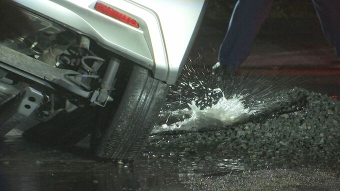 道路に空いた穴は直径およそ2メートル、深さおよそ60センチ。