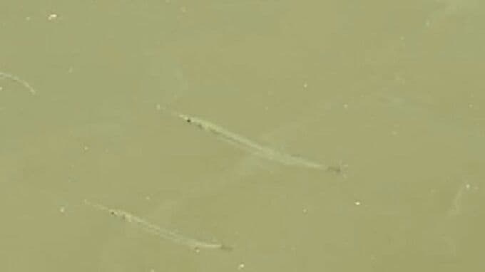 川の中にいたのは、数十匹の細長い魚の大群です。その正体は?
