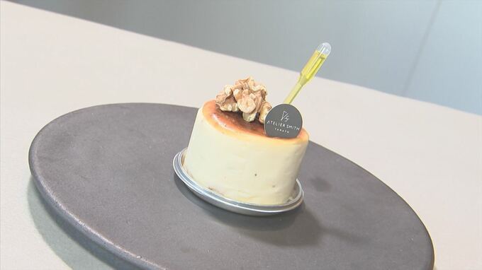 「クルミとコショウのチーズケーキになっていて、これでまず楽しんでいただいて、その後白トリュフのオイルをかけていただいた時に、また新しい味わいを楽しんでいただけたらなと」