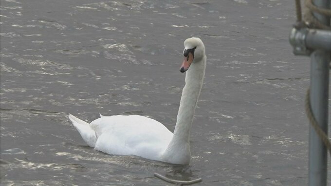 取材班が橋から数百メートル離れた大橋川を訪れると、動画と同じハクチョウかは分かりませんが、1羽のハクチョウが悠然と水面に浮かんでいました。
