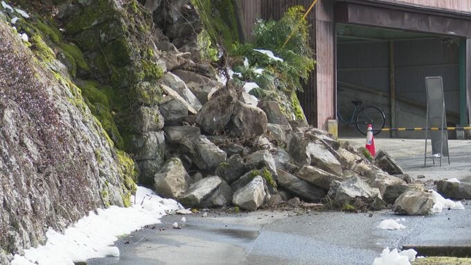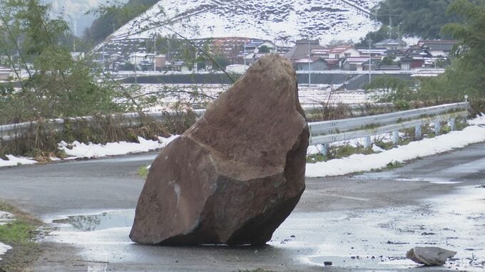 崖から落ちてきたとみられる岩が道路をふさぎ、通行できない状態となっていました。