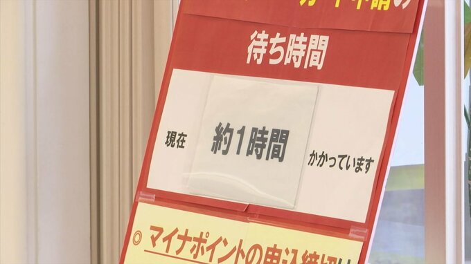 「マイナポイントが受け取れるカードの申請はきょうが最後ということで、窓口の待ち時間は1時間となっています」