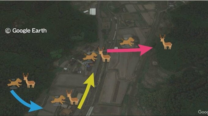 「写真の奥に橋があるんですけど、そっちの方にシカとイヌとケンカしながら行きました。200メートルぐらい行ったところで、シカが逃げたので、イヌだけ保護して、役場の方に迷い犬ということで引き渡しました」