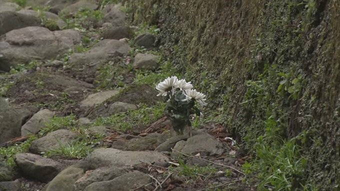 女性が転落したとみられる場所には今朝、白い花が手向けてありました。