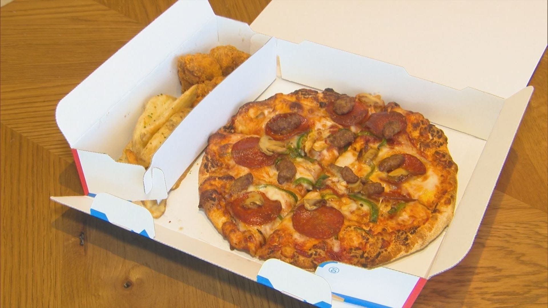 「注文が増えたピザ。例えばこちら、ピザと唐揚げ、ポテト、この1人用が2つセットになって1555円からというキャンペーンが人気だということです」