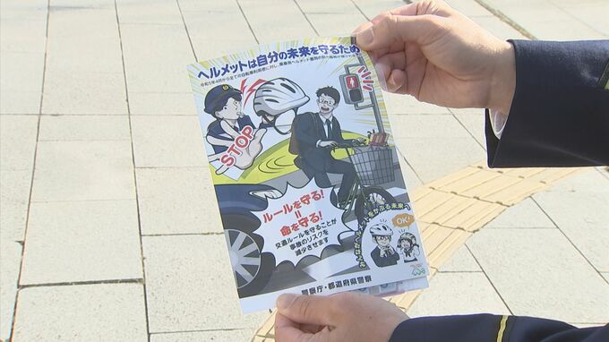 今回の広報活動では自転車利用者50人のうち、ヘルメットを着用していたのは15人と、すぐには浸透していない模様です。