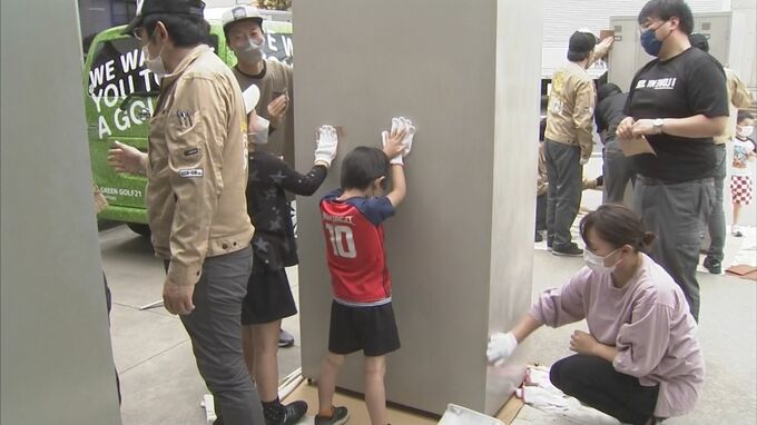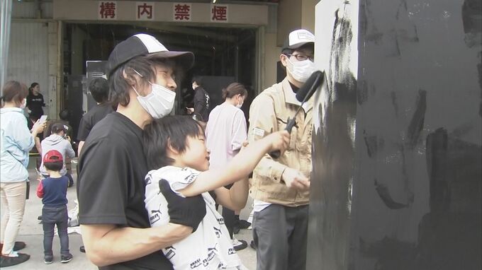 親子や社員同士で協力して、時には落書きするなど楽しみながらの作業です。