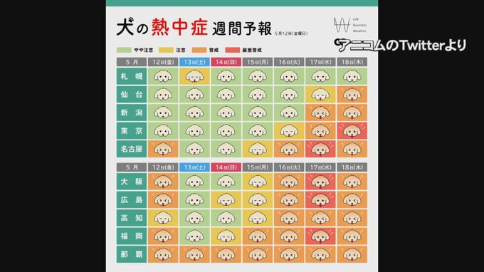 ペット保険などを手掛けるアニコム損害保険は、「犬の熱中症週間予報」「猫の熱中症週間予報」の配信を始めました。