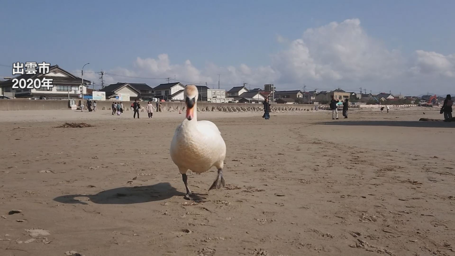 また、2020年には出雲市の観光名所・稲佐の浜に登場。人に慣れてしまったのでしょうか。近づいても逃げずに、のんびりとお散歩している様子が目撃されました。
