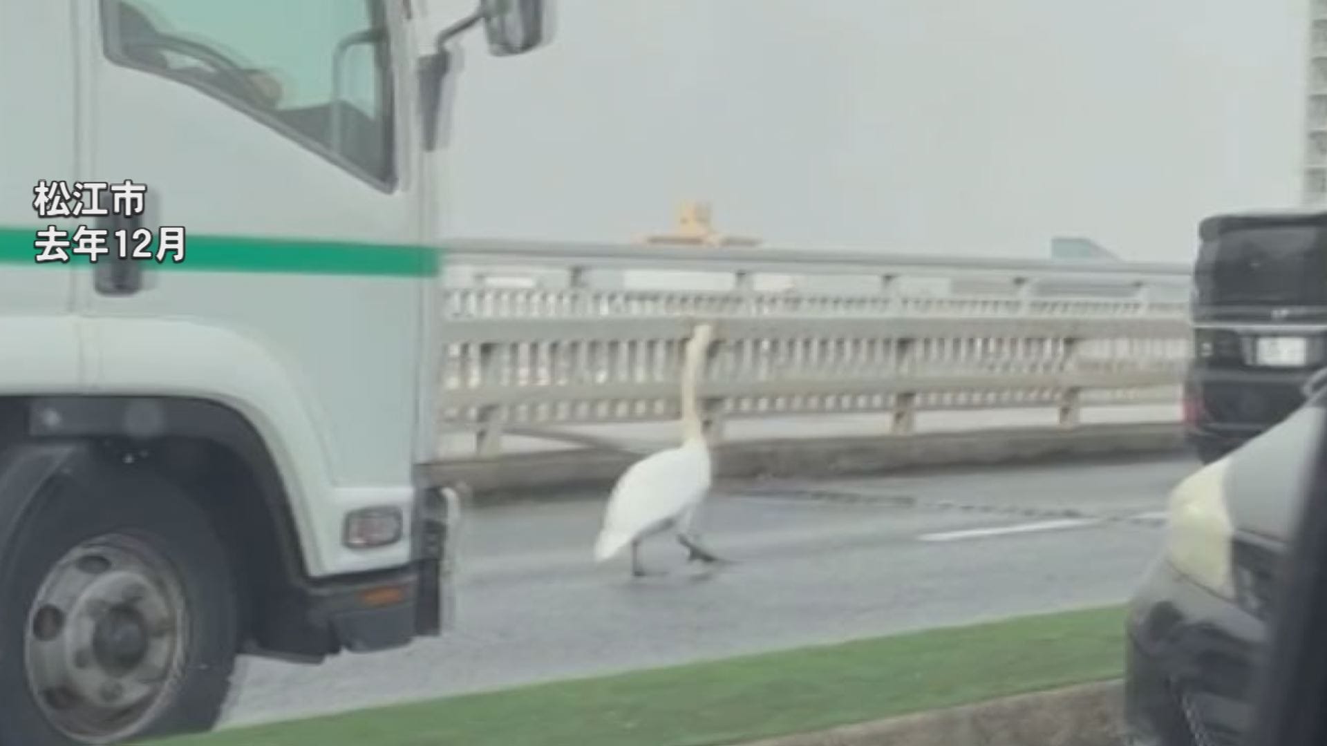 2022年末、コブハクチョウが現れたのは、島根県松江市の「くにびき大橋」の路上。この影響で、辺りでは渋滞が発生しました。