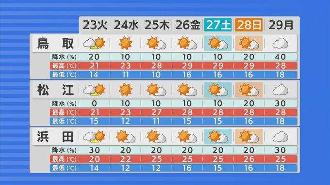 一方、日差しが降りそそぎ気温は上昇。木曜日ごろからは連日25度以上の夏日となるところが多い見込みです。特に週末は30℃近くなる日もありそうです。