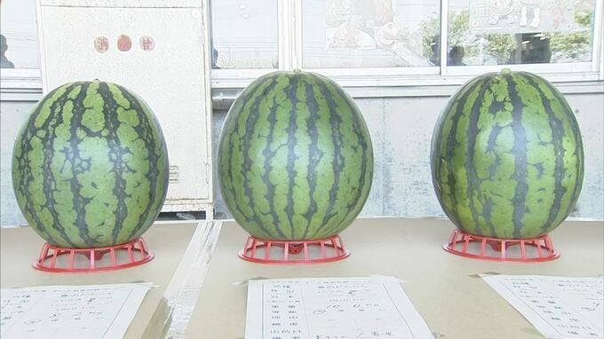 23日、鳥取県北栄町で特産の「大栄西瓜」の査定会が開かれました。