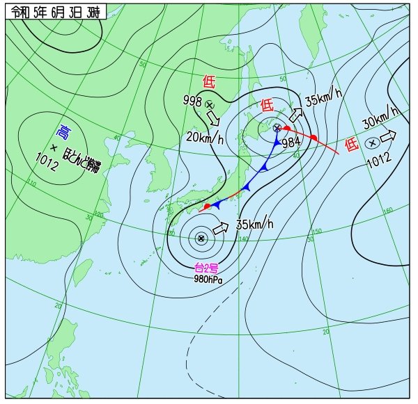 今月3日の天気図を見ると、台風2号の北側には前線があり、紀伊半島から東海・関東甲信地方の太平洋側にかかっているのが分かります。