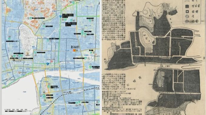 「松江市のハザードマップなんかを見て頂くと、分かりやすいかと思うんですけども。これを見比べてみても非常に明治26年の浸水範囲と被ってますので。」