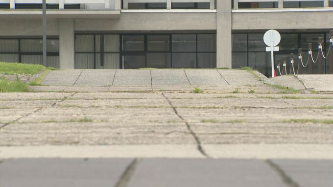 周囲の堀、今は埋められていますが、県庁の側が周りより高いため、上り坂になっています。