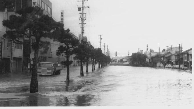 この時は、松江駅周辺や城山の西側一帯などが内水面氾濫で大規模に浸水しました。