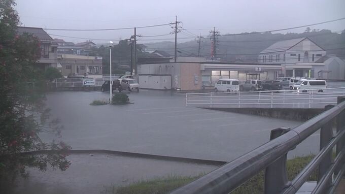 コンビニの駐車場にはみるみる水が溜まり始めます。
