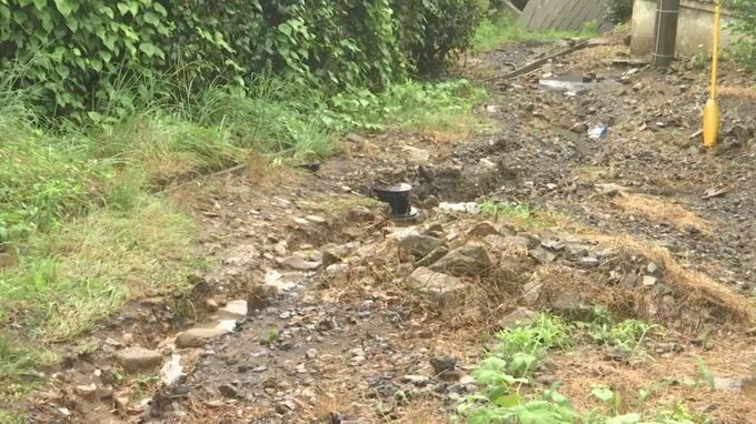 山沿いでは側溝から水があふれ、山から、川からの水に挟まれ住民は。