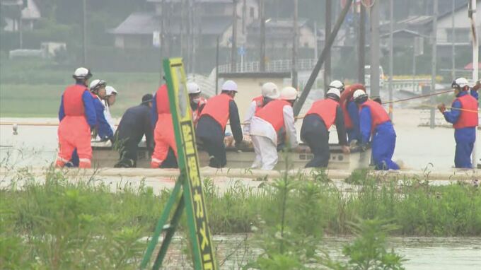 「今、住人らがボートによって救助乗って救出されていきます」
