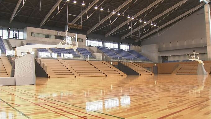 「(改修の)1つ目が観客席5000席の確保でございます。移動式観覧席の増改築。2階の固定席を改修することで5000席が確保できる体育館を目指します。」