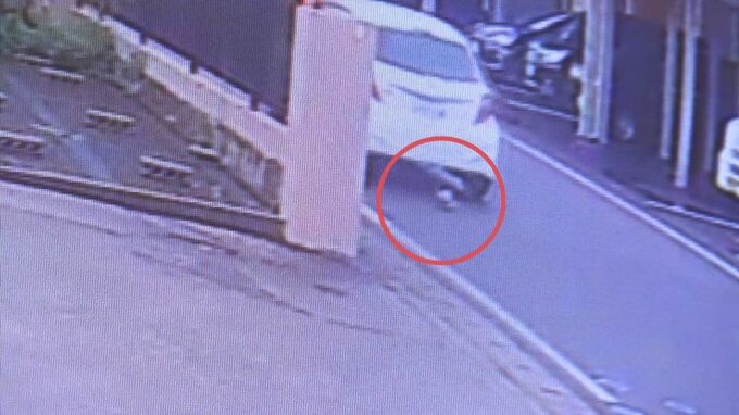 走行中の車から、小さな何かが落ちて、道路を転がったことがわかります。