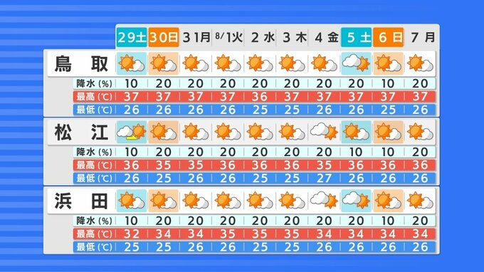 10日間天気予報を見ても、37度の気温予想が連日続いていて、鳥取と松江では10日連続で猛暑日予想となっています。