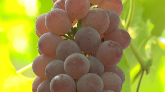 「出雲の特産、まさに今食べ頃を迎えているデラウエアいただきます。甘味と酸味のバランスが最高ですね」