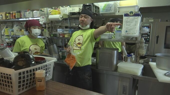JR松江駅に近い洋食店「ビストロ庵タンドール」。ヒヨコマークのTシャツを着たスタッフたちが、ハンバーグの生地を丸めたり、野菜を切ったりと準備に大忙しです。