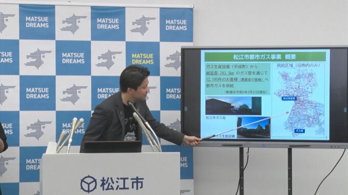 松江市ガス局は、中心市街地一帯に総延長243キロのガス管を持ち、範囲内の3割弱に当たる1万2100件余りに、都市ガスを供給しています。